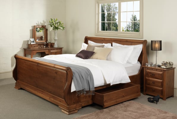 This is a bit of a broad church because it embraces the latest version of everything. For the purposes of this post on how to get the best out of smaller bedrooms I'm recommending you look at sleigh beds, in particular, The Loft. Just that bit neater and more compact than many other sleigh beds. It still packs the same stylish punch and is available in wax finishes or the cooler paint finish that can be a great help when blending wall colours and fabric colours together.